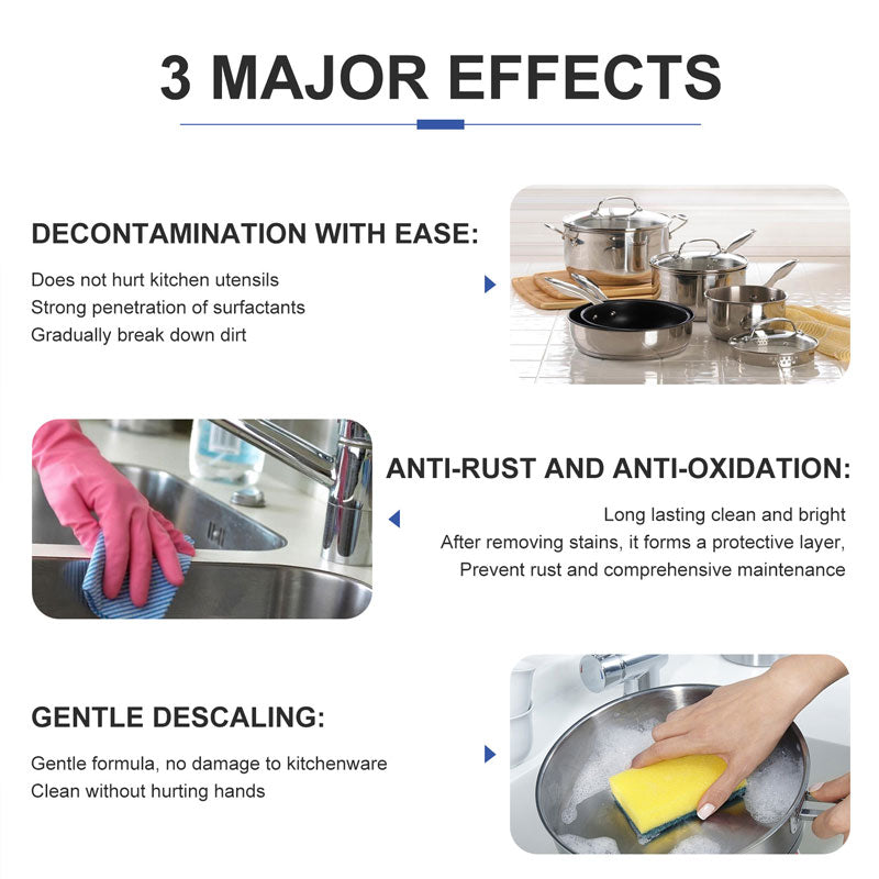 Lämplig för rengöring av krukor, stekpannor, spis, krukbotten, golv, diskbänk, kranar, kakel, köksfläkt, soffa, skor och så vidare, vilket gör alla föremål så rena som nya.