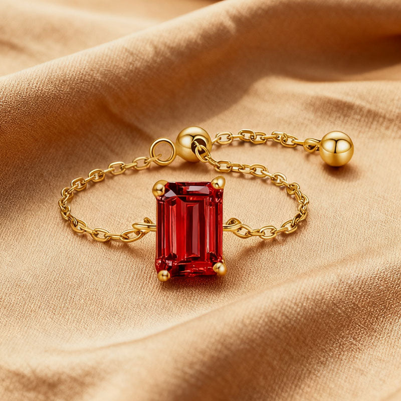 ❤️ Guld med röd sten – lyxig & iögonfallande